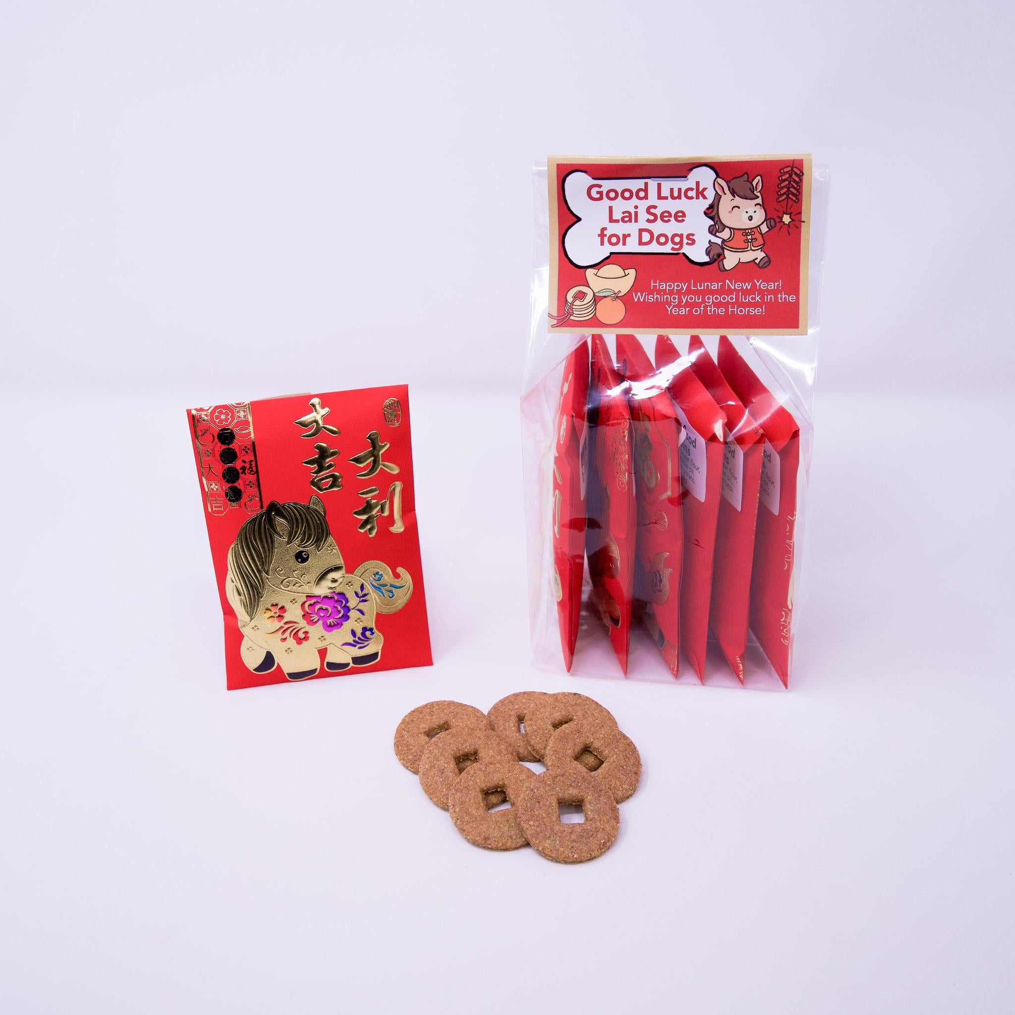 Not wanting our pups to feel left out, we created our own version of this tradition – Doggie Lai See! Our envelopes aren’t filled with real money but with a currency dogs will love: Crunchy Okinawan Sweet Potato Biscuit “coins”!